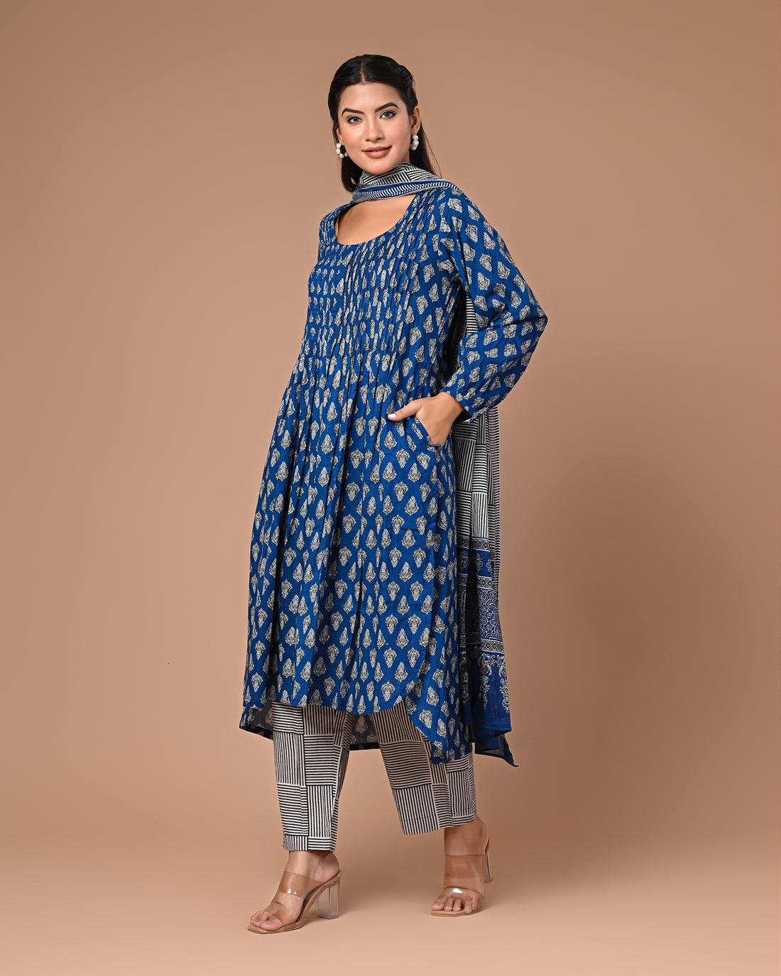 The Maroon Printed Cotton Anarkali Three Piece Set is a stunning ensemble! The fabric is so comfortable and breathable, perfect for long hours of wear. The print is elegant and the maroon color is rich and beautiful.