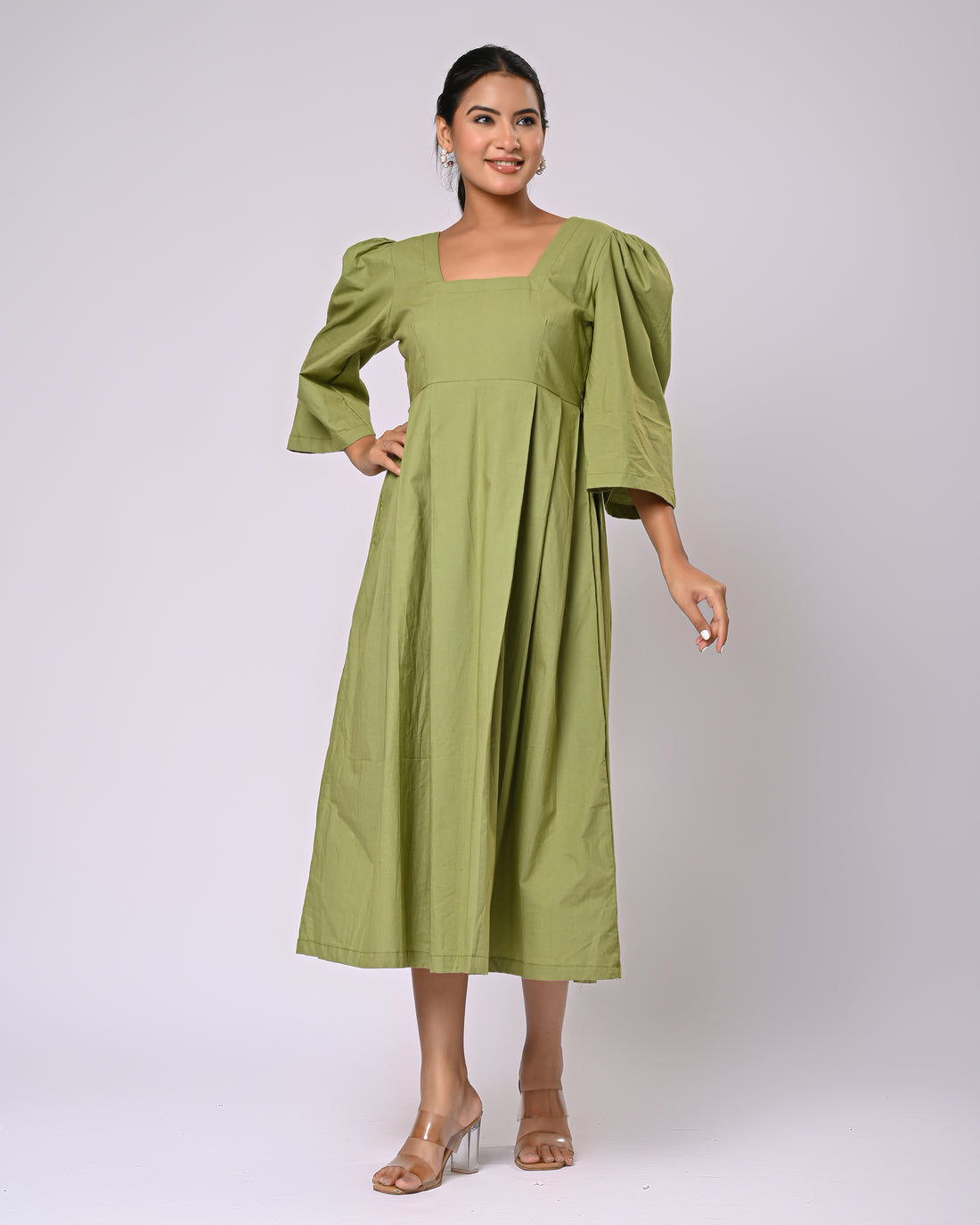Fusing the best of ethnic and modern sensibilities, our gorgeous Moss Green Gingham Cotton Dress...