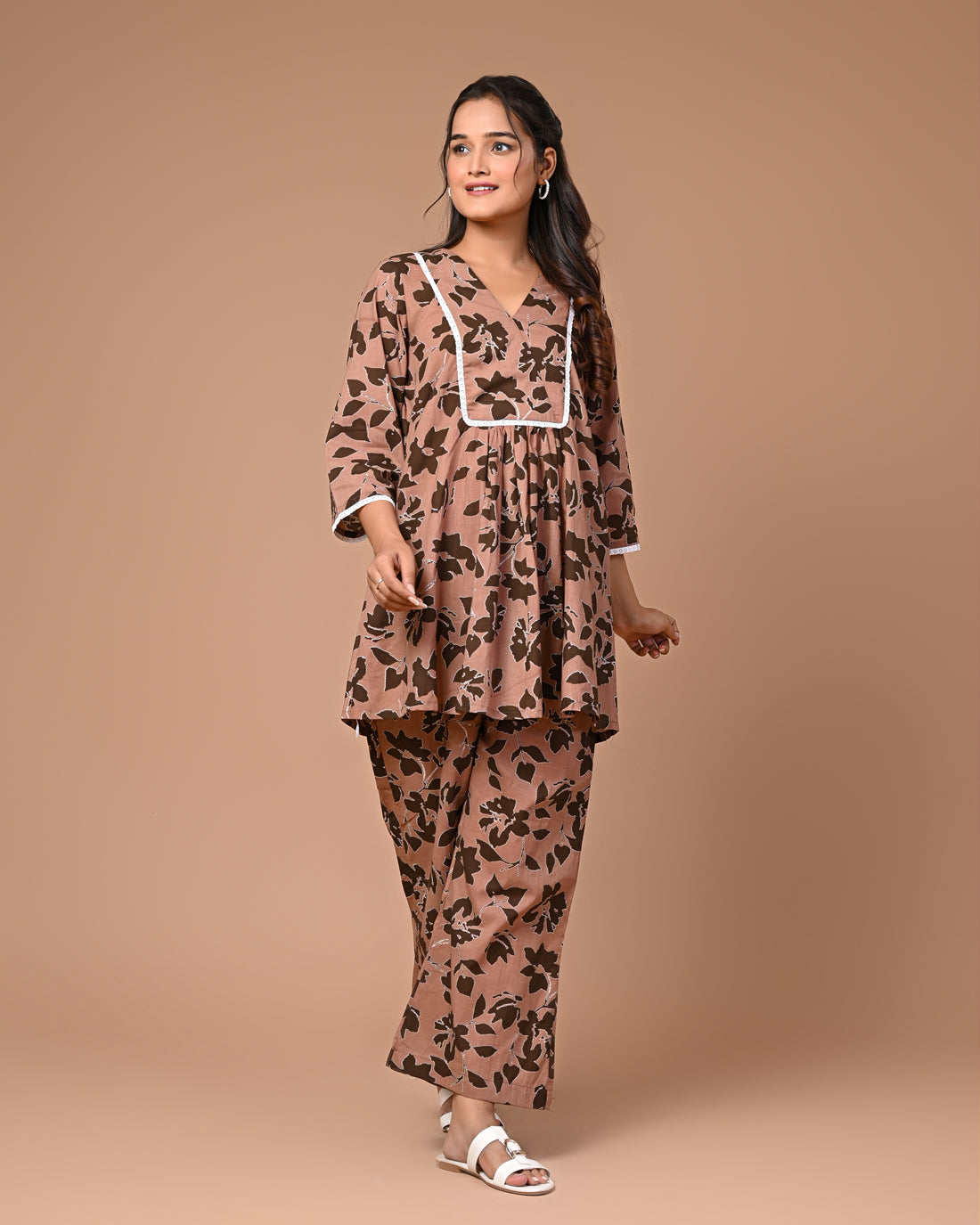 Embrace warmth and sophistication with the Maple Cocoa Co-ord Set. Made from soft cotton and...