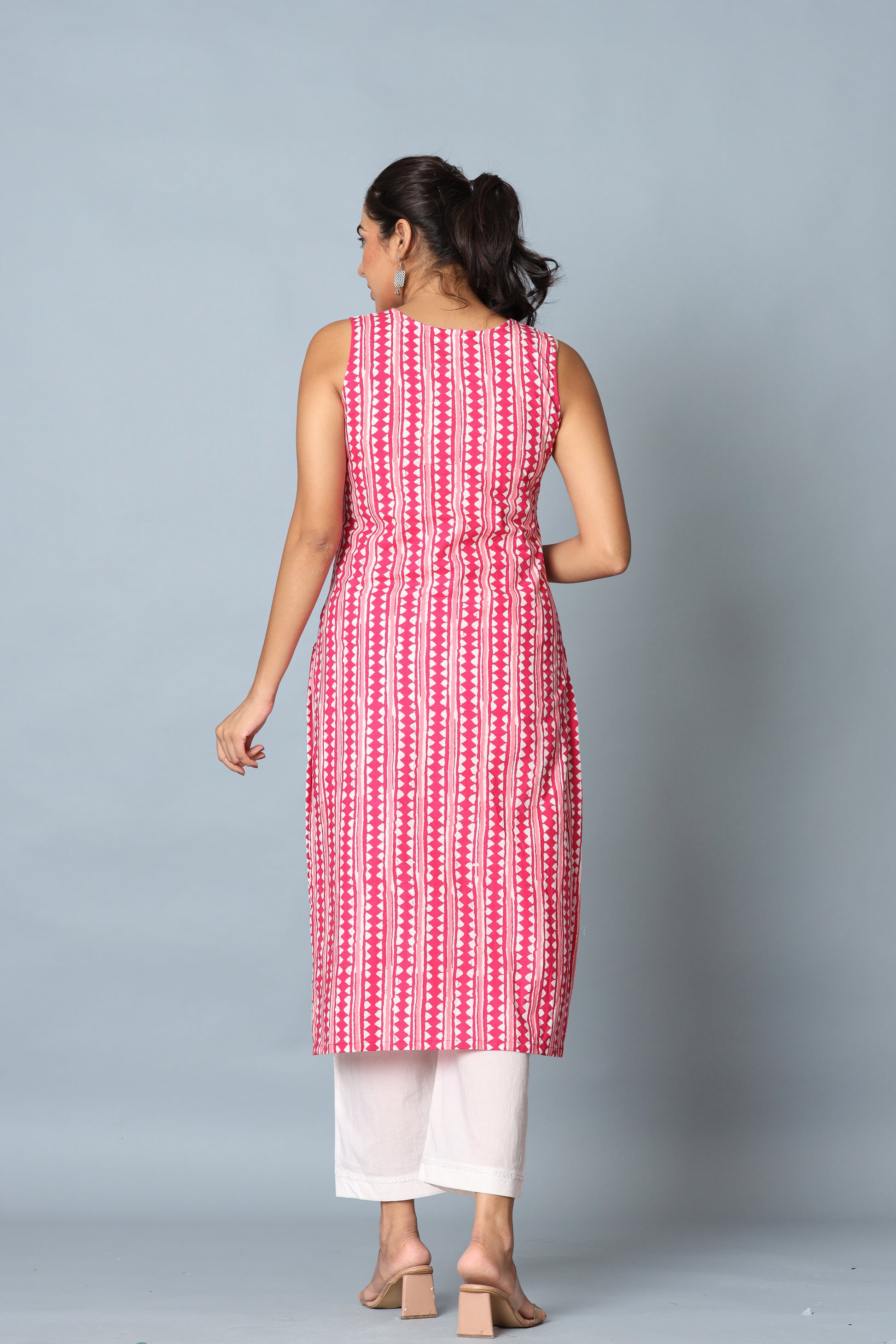 Add a splash of joy to your wardrobe with this cotton two piece cotton suit set by Sakhiyaan Jaipur. Crafted in soft, breathable cotton, this set features a floral print kurta design paired with matching pants. Making it perfect for both everyday wear. The rich play of colours brings alive a casual yet elegant charm while keeping you cool and comfortable all day long.
