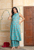Add a splash of joy to your wardrobe with this cotton two piece cotton suit set by Sakhiyaan Jaipur. Crafted in soft, breathable cotton, this set features a floral print kurta design paired with matching pants. Making it perfect for both everyday wear. The rich play of colours brings alive a casual yet elegant charm while keeping you cool and comfortable all day long.
