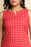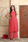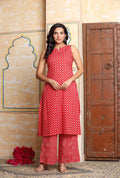 Red Cut Sleeves Kurta Bottom Set Of Two