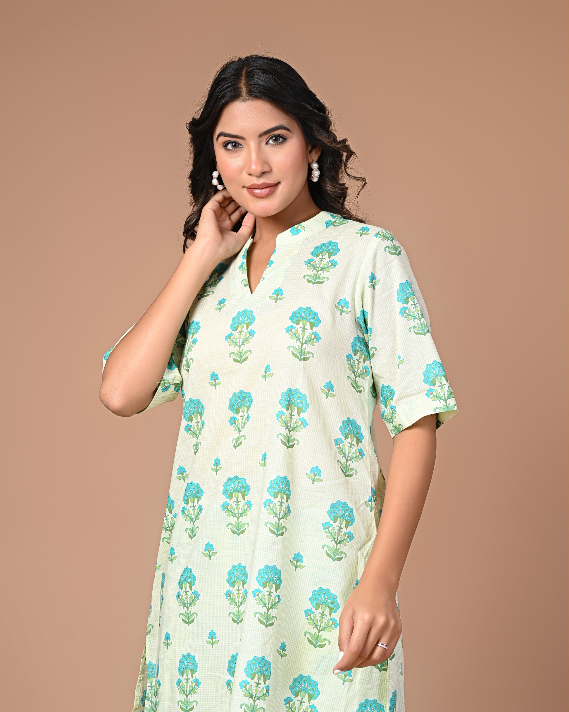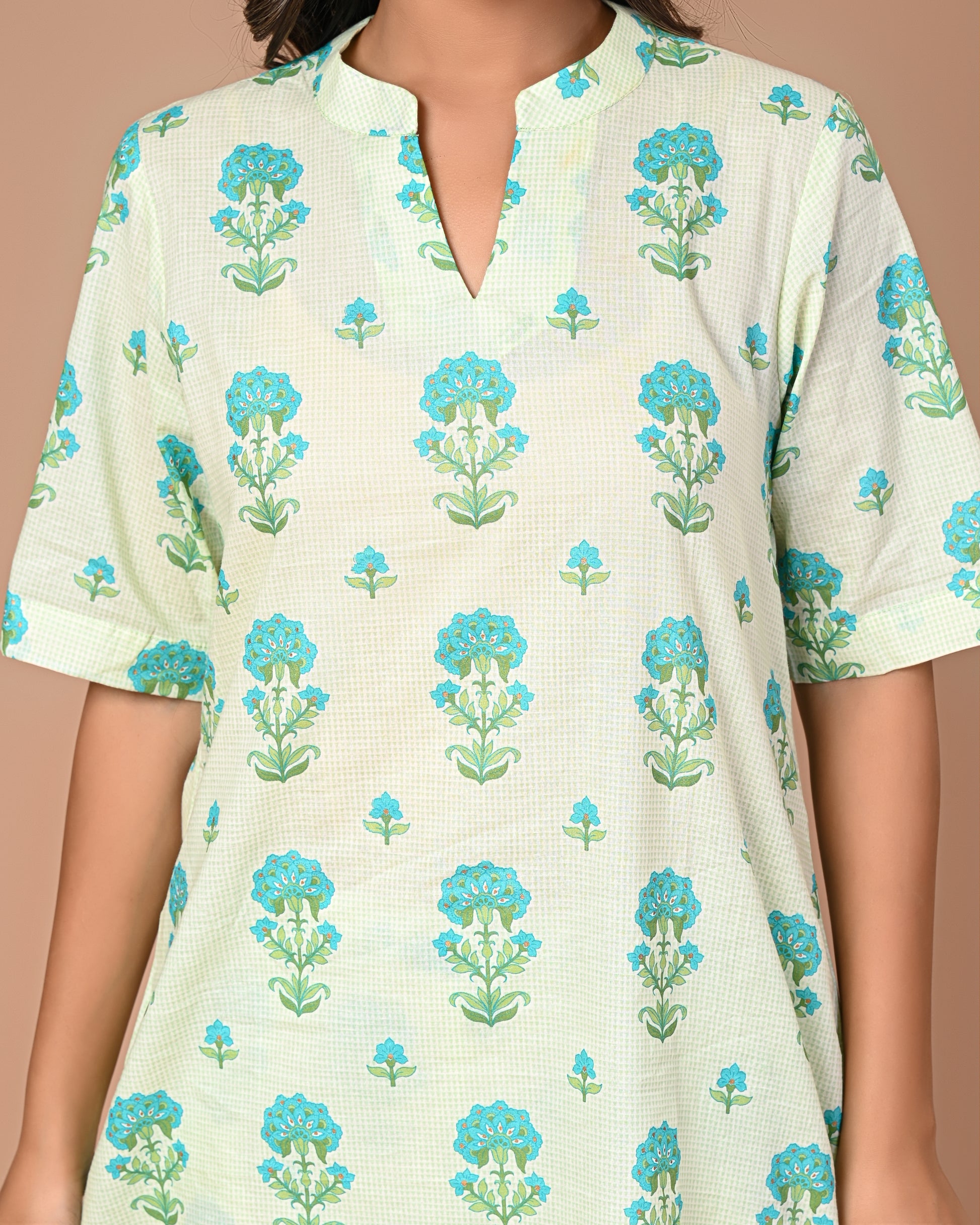 Checks and florals together to give that chic fusion look. Comfort as light as fur and elegant as a breeze. Don’t miss this co-ord for that carefree yet gorgeous vibe.